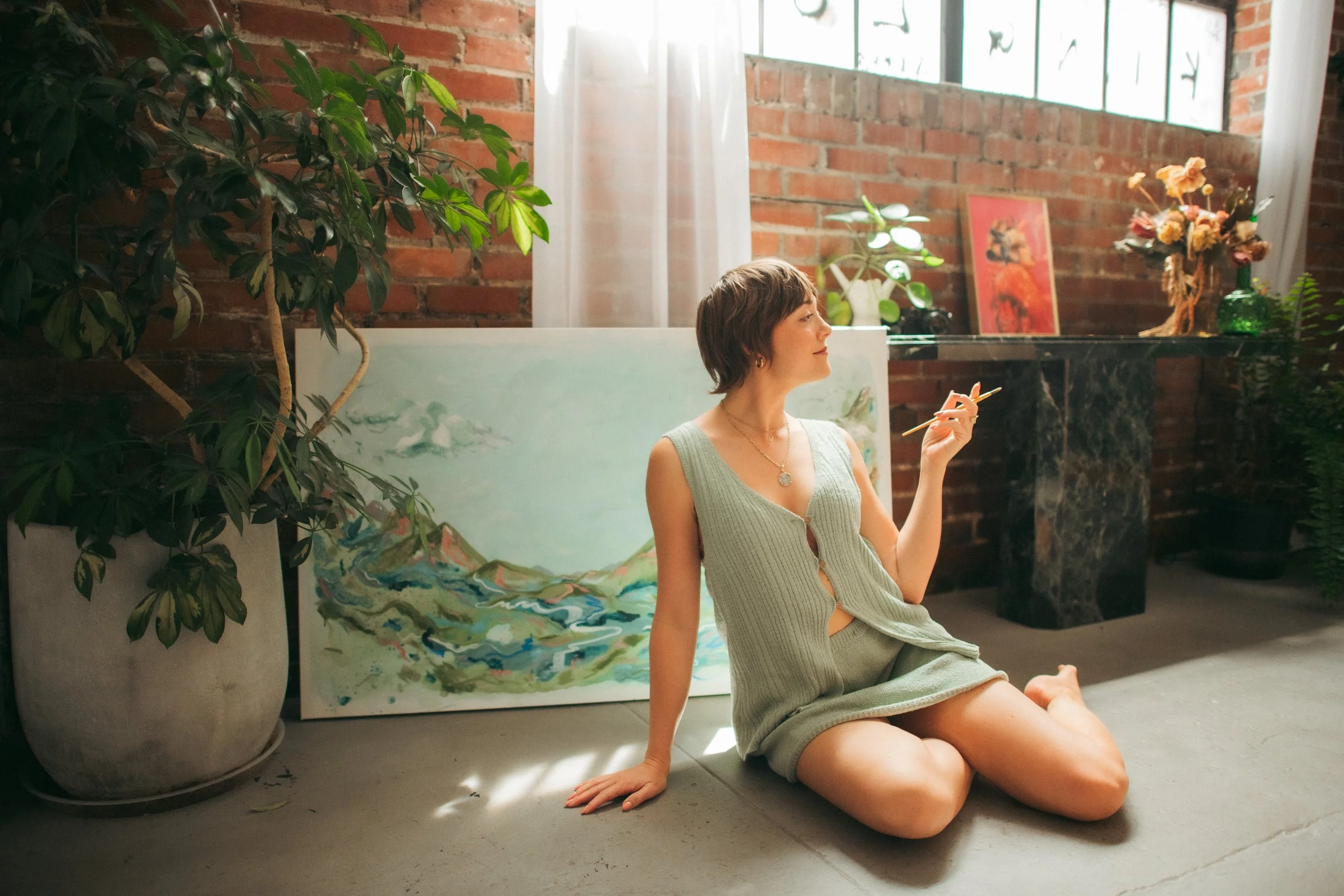 Originally from Colorado, Sharon now splits her time between the Rocky Mountains and the Florida Keys, living and working seasonally from her Airstream. This mobile lifestyle, shaped by contrasting environments, informs both the content and tone of her work. When she isn’t painting, she teaches yoga and meditation, and takes long walks with her dog and boyfriend on the beach.